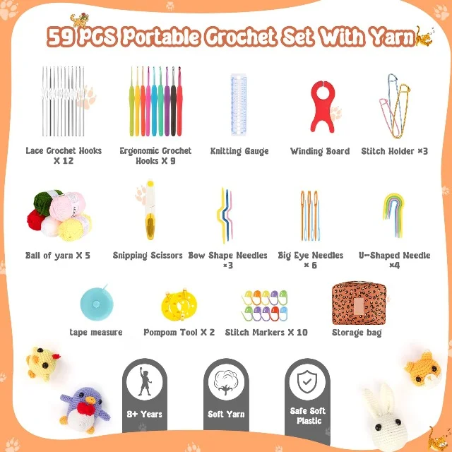 - Coopay Crochet Kit Beginners Crochet Hook Set with Crochet Yarn,58PCS Portable Crochet Set Ergonomic Crochet Hooks Travel Knitting Crochet Supplies