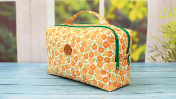 This Double Zipper Box Pouch is a great size to carry many small products and has two zippers for two separate compartments. And it has a handle, making it the perfect pouch to use when traveling.
