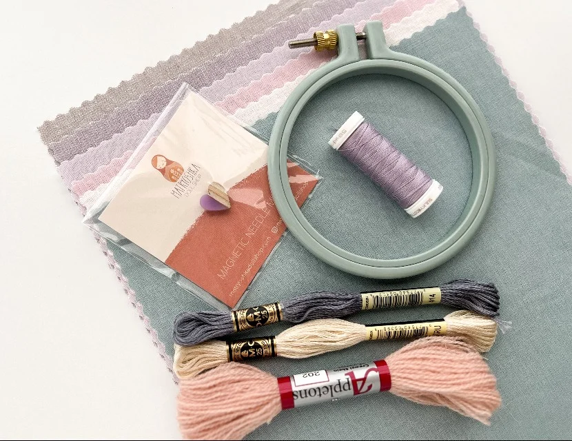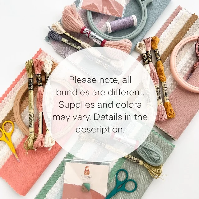 Inside each mystery bundle, you'll discover a mix of exciting goodies, including cotton and linen blend fabric swatches (measuring 8”x8”), embroidery hoops, colorful threads and floss, handy scissors, and more surprises waiting to be uncovered! 🎁