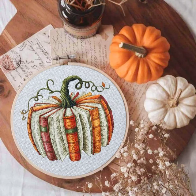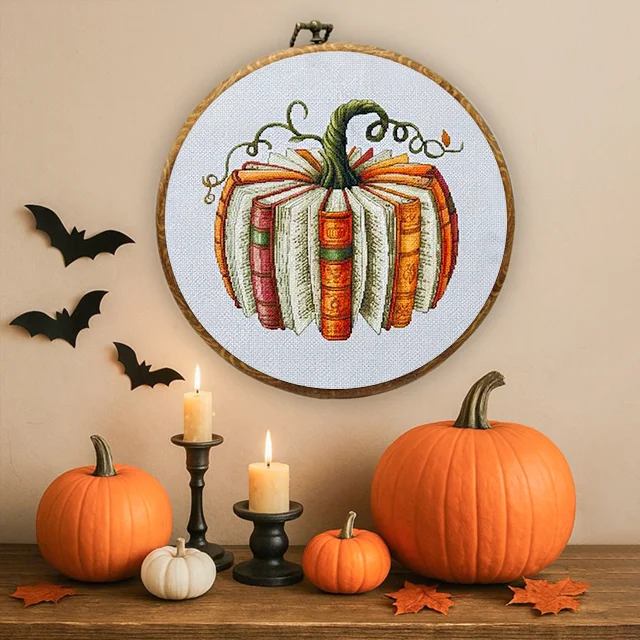 🍂 Fall Decor Book Pumpkin Cross Stitch Kit 📚🎃