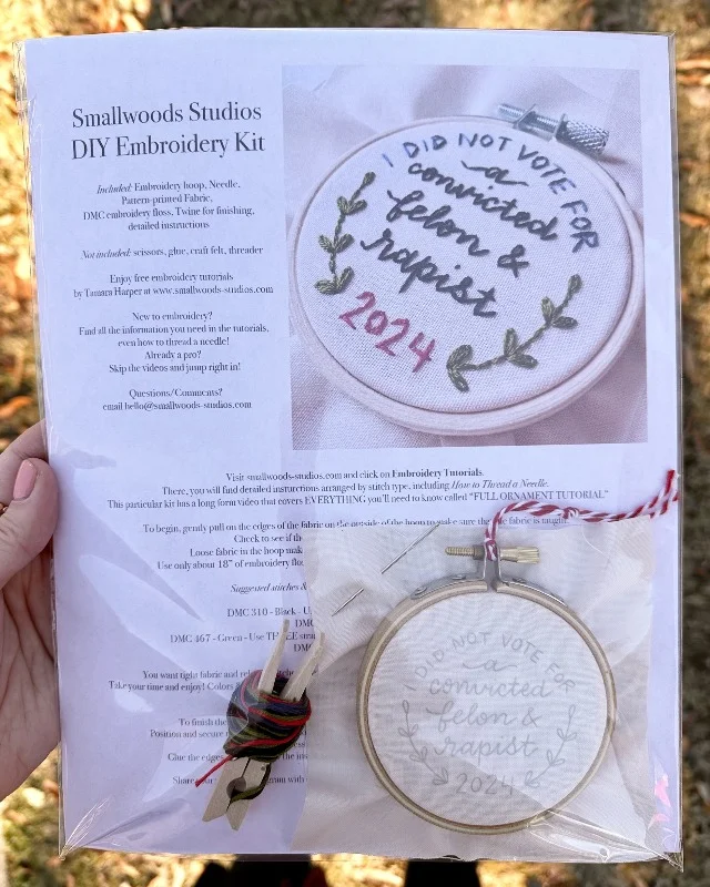 The holiday season is approaching, and if you're looking for a cheeky, politically charged gift for your Trump-supporting friends and family, we've got just the thing! Introducing the DIY embroidery kit for the “I did not vote for a convicted felon & rapist 2024” ornament — a perfect way to stitch your stance while decking the halls. It’s the perfect mix of humor, politics, and crafty goodness!