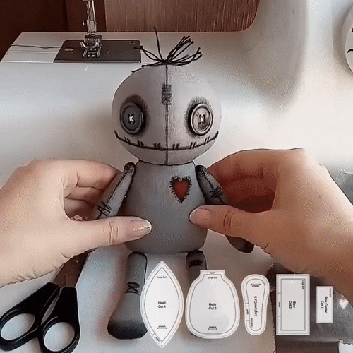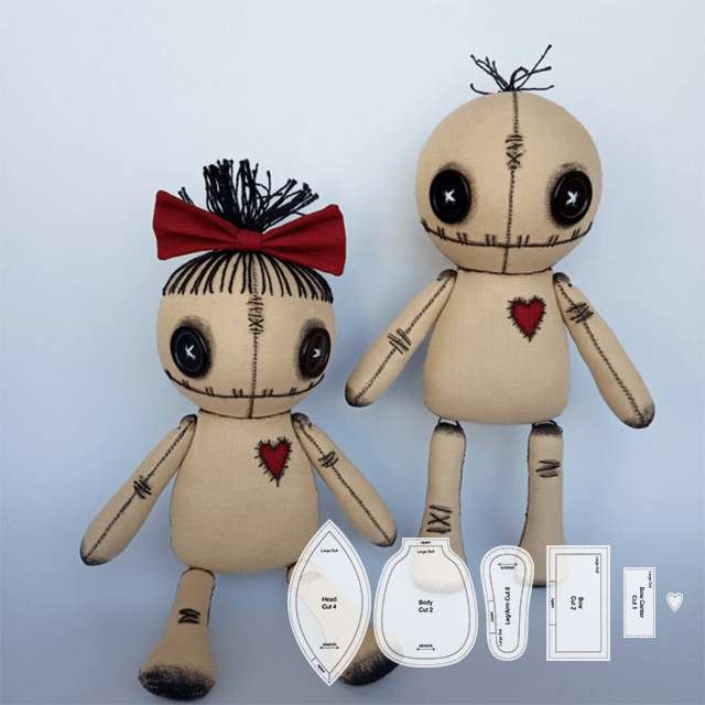 Halloween Stuffed Voodoo Doll Sewing Template Set (6PCS) - With Instructions