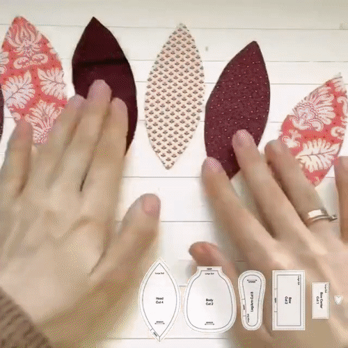 Tools you will need: sewing machine or needle and thread, pins, scissors, air erasable fabric marking pen, stuffing stick (like chopstick or pencil), long sewing needle (doll needle), flat paint brush