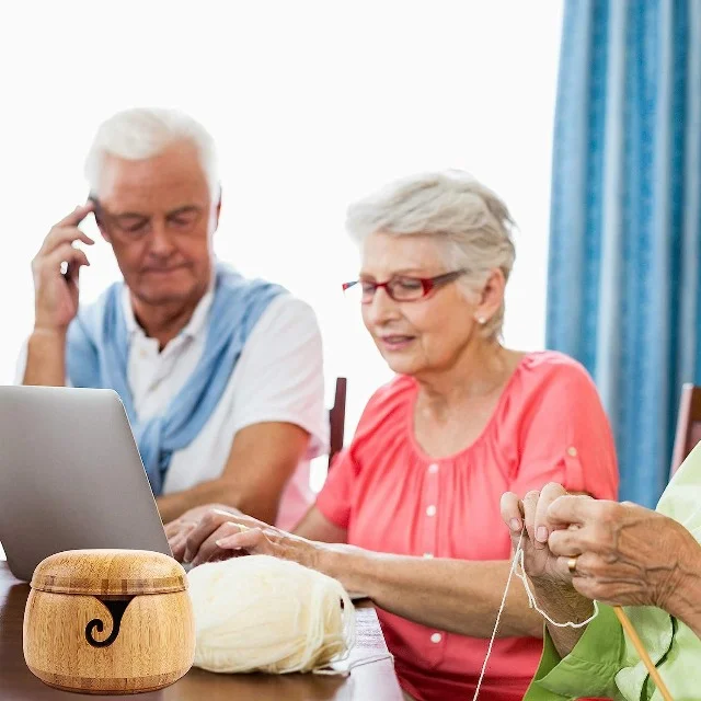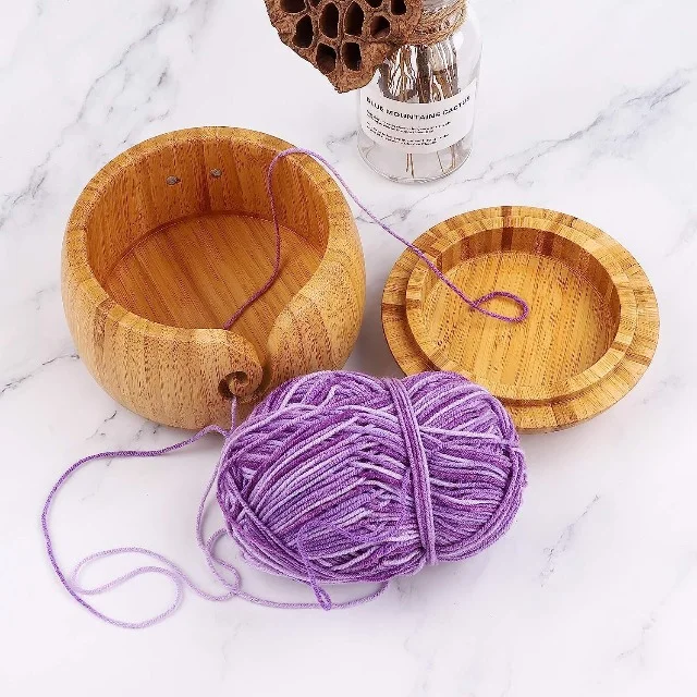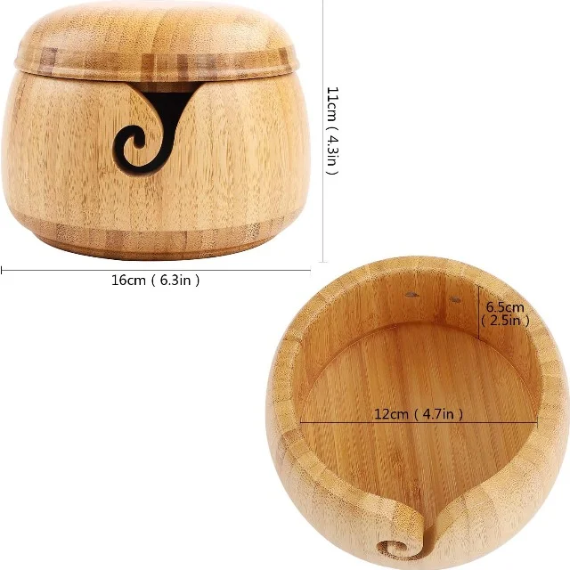 - Large Bamboo Yarn Bowl Storage Knitting Bowl Wool Holder with Removable High Lid Holes Yarn Bowl Storage