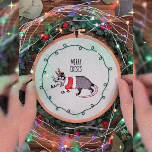 Meet our merry possum, ready to shriek its way into your heart and holiday decor! This hand embroidery kit features a spirited opossum who simply can't contain its festive cheer.