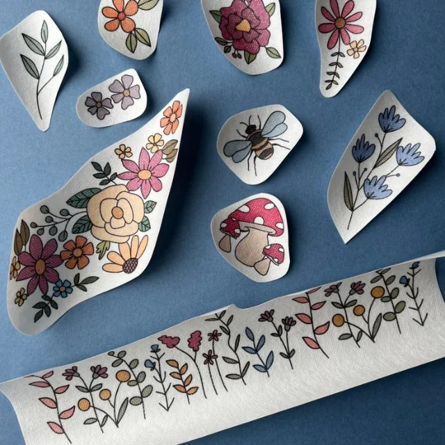Say goodbye to complicated patterns! These 9 preprinted designs on soluble stabiliser are ready to stick, stitch, and go. Just cut out your design, stick it where you want, and you’re good to start embroidering! 🌸✨