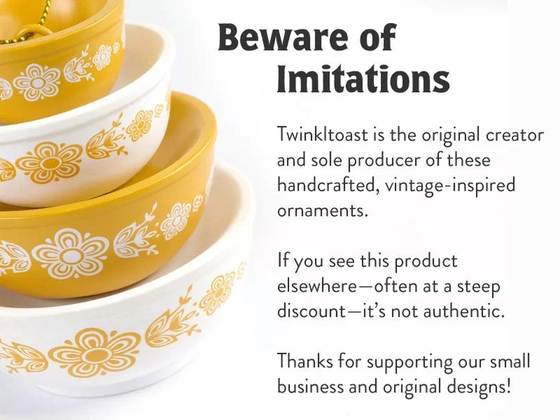 This ornament doesn’t just hang around during the holidays—it’s perfect for year-round display! Many of our customers love showing off their Pyrex collection with this little ornament, making it the ideal companion to your vintage treasures. Hang it on your tree for the holidays, showcase it on your kitchen shelf, or even sneak it into a friend’s Pyrex collection to spread the love and keep the legacy alive! 😍