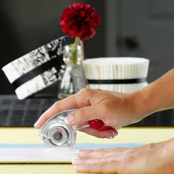 Unlike traditional rotary cutters, this Rotary Cutter is held in a natural position with your arm and palm of your hand evenly distributing all of the pressure. It relies on pressure from your entire arm and hand instead of just your wrist and fingers.