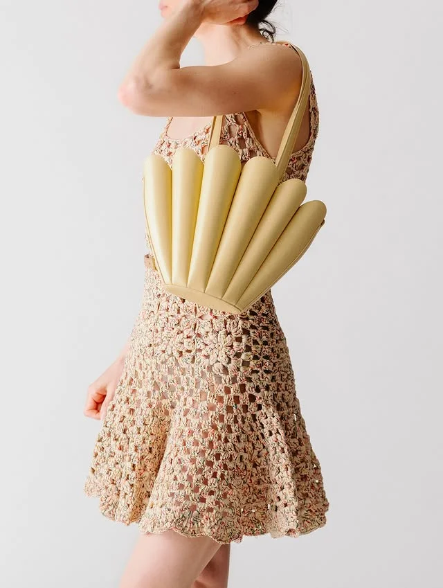 Why carry a boring bag when you can carry a work of art? This seashell-inspired tote is big, bold, and beautifully padded — ready to make a splash everywhere you go. Think soft curves, sculptural panels, and a cozy puff that looks as dreamy as it feels. ✨