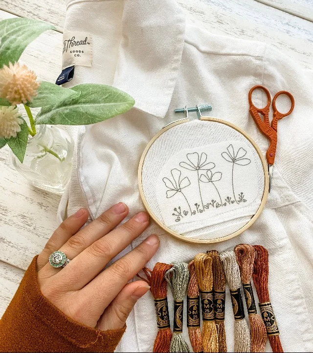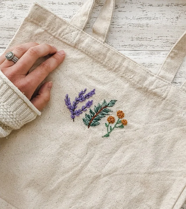 Stick & stitch "Whimsical Florals" on clothes, towels, totes—anything! 🌸 I loved adding this floral trio to my darling tote! 🤍