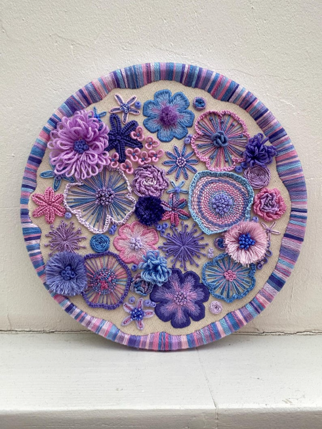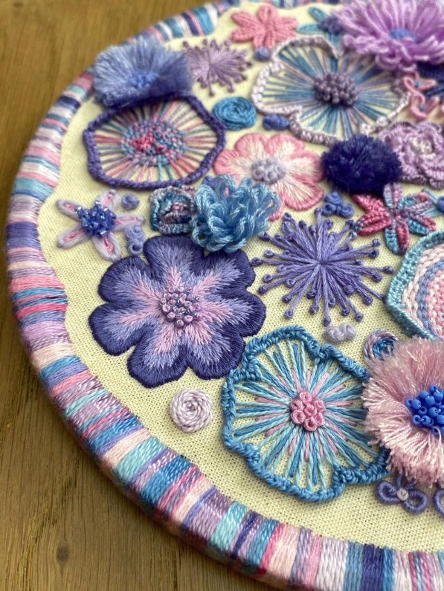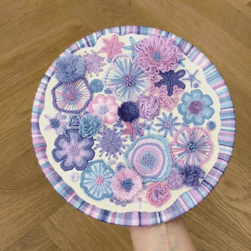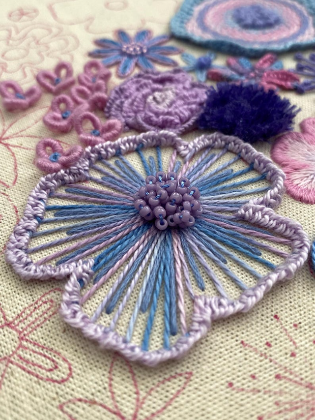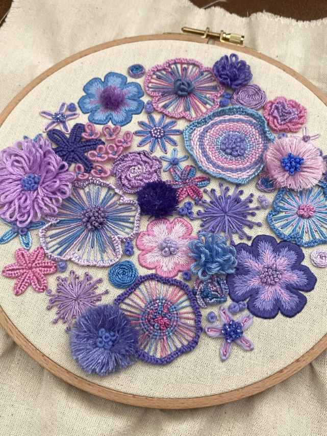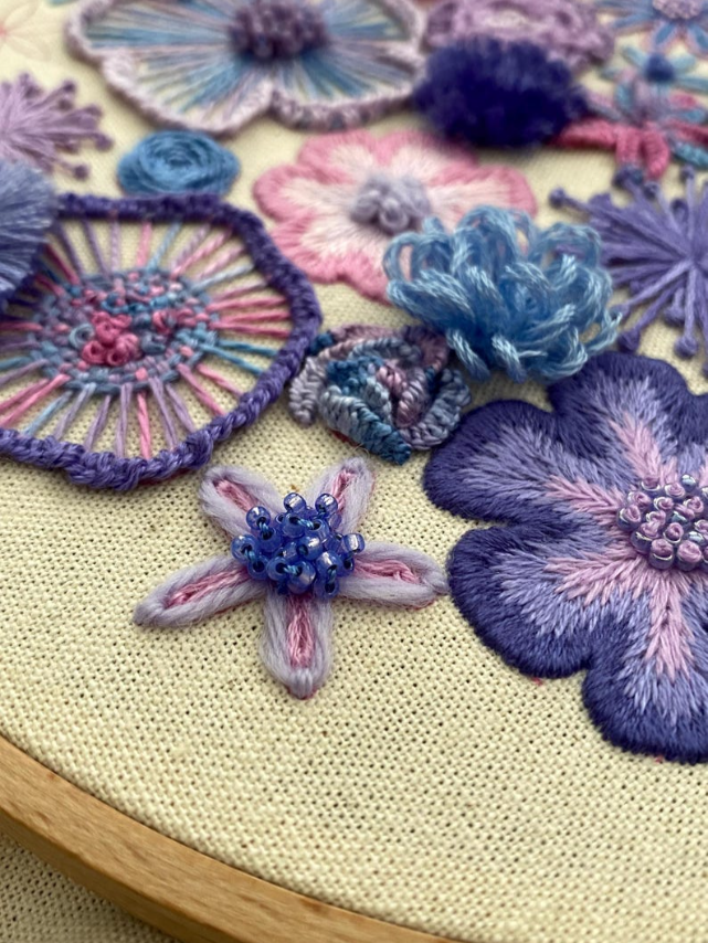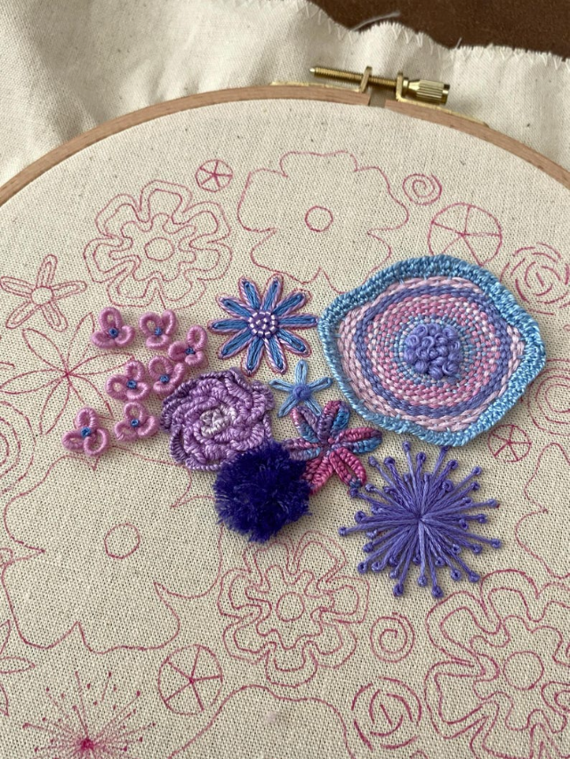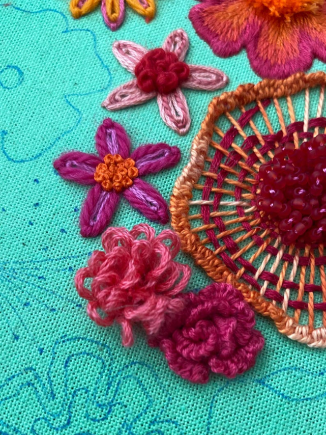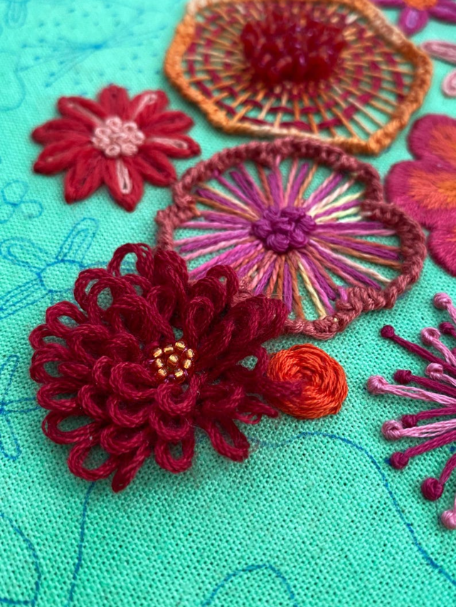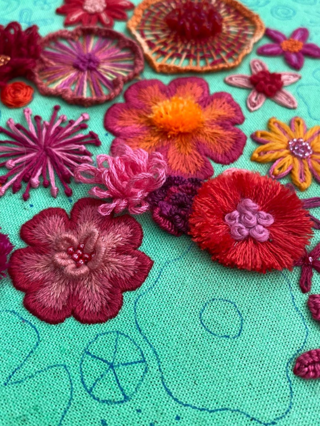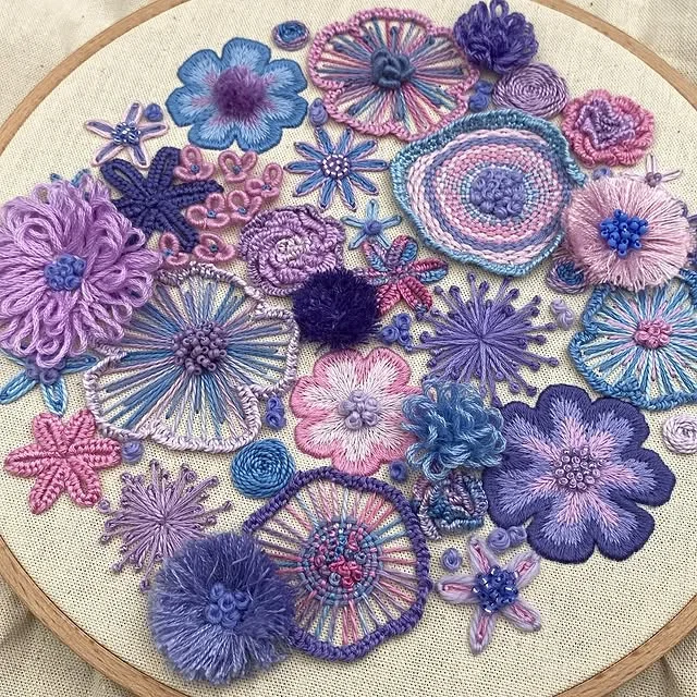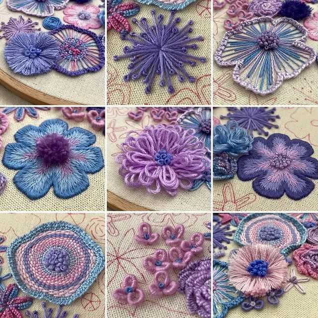 Each flower comes with its own personality—some puffy, some twisty, some a little rebellious (looking at you, French knots). With every stitch, you’re not just making petals, you're building textures, depth, and pure embroidered drama. Think soap opera, but with flowers. 🎭🌺